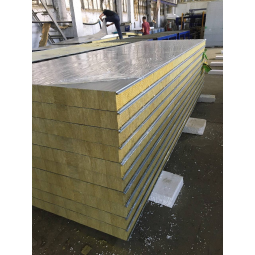 Виготовлення сендвіч-панелей для сучасного будівництва які складаються з оцинкованої сталі з полімерним покриттям та мінеральної вати або пінопласту.
