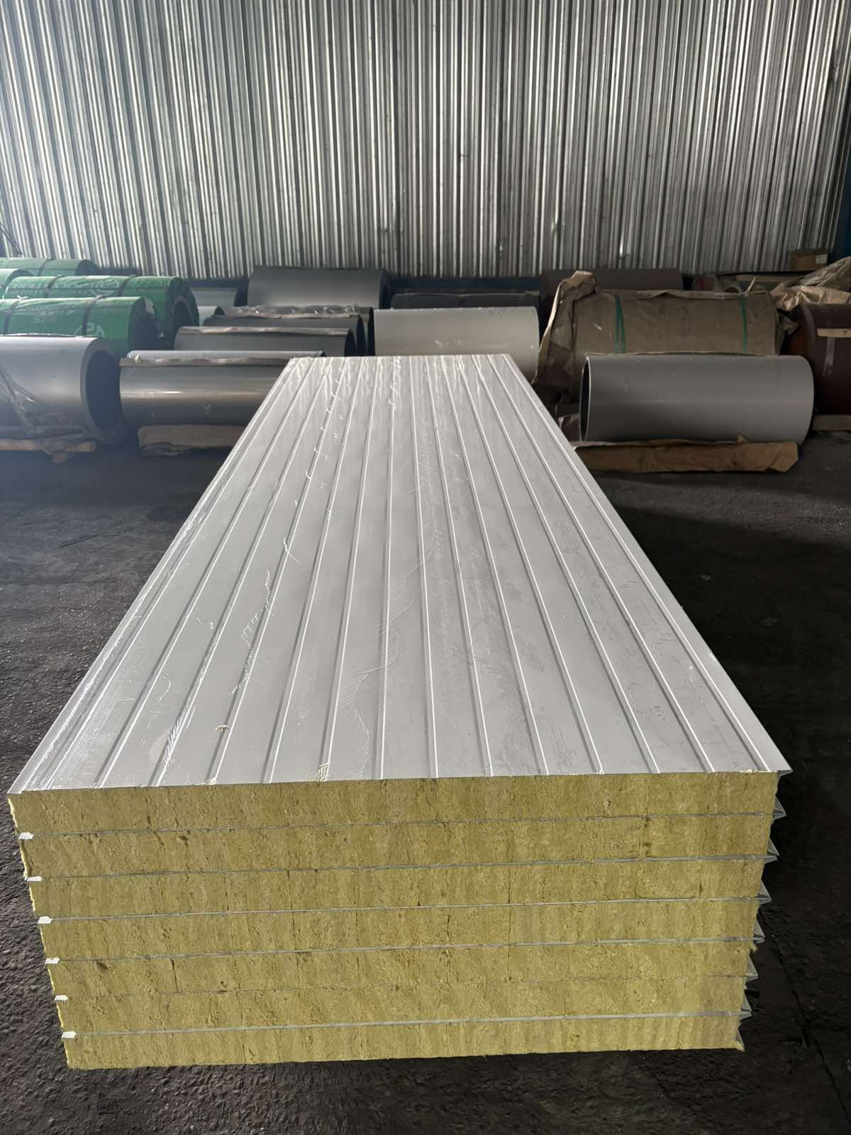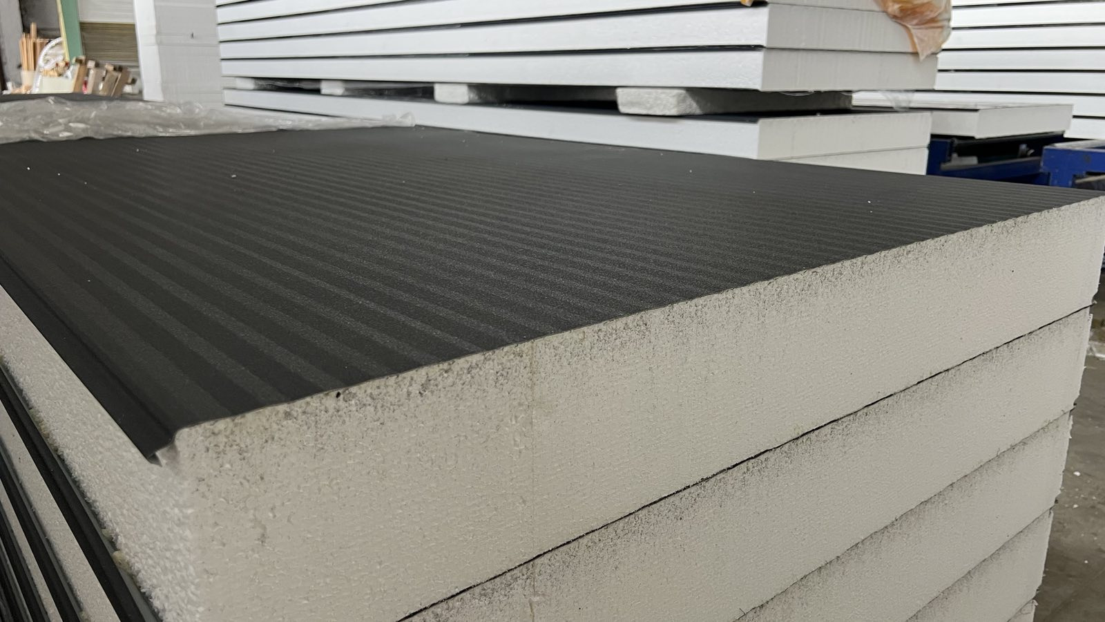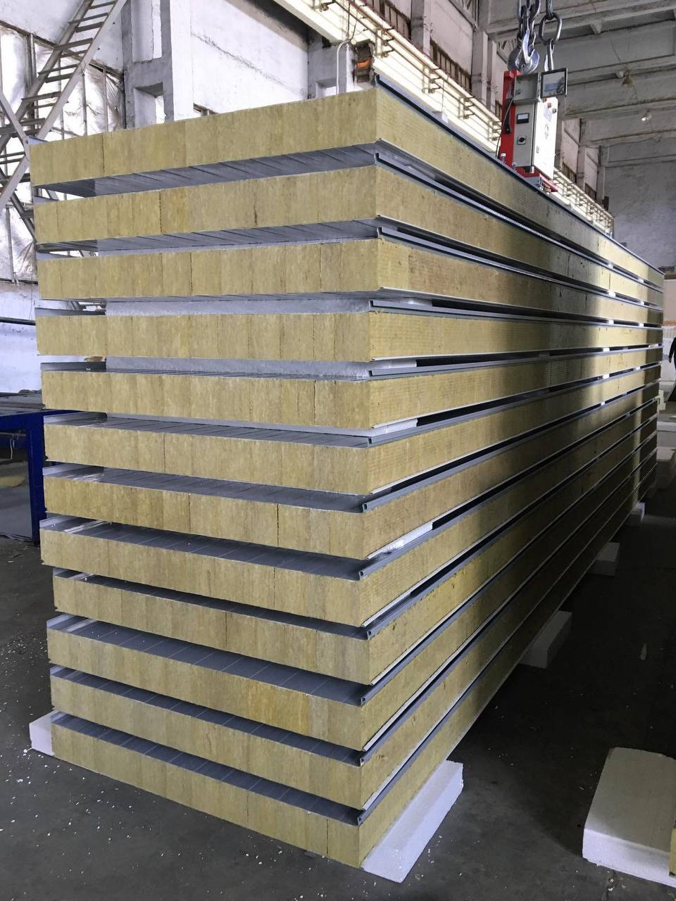 Виготовлення сендвіч-панелей для сучасного будівництва які складаються з оцинкованої сталі з полімерним покриттям та мінеральної вати або пінопласту.