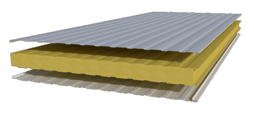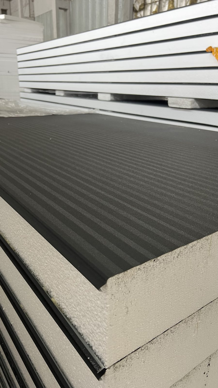 Виготовлення сендвіч-панелей для сучасного будівництва які складаються з оцинкованої сталі з полімерним покриттям та мінеральної вати або пінопласту.